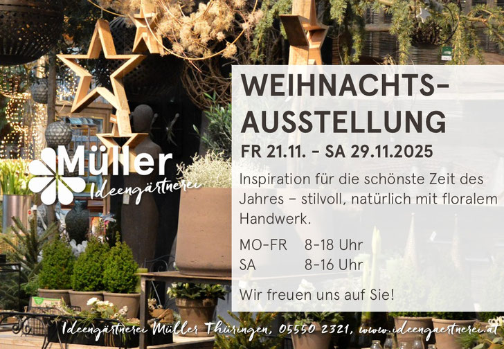 zu unserer Weihnachtsausstellung vom 22. bis zum 30. November 2024 ein!